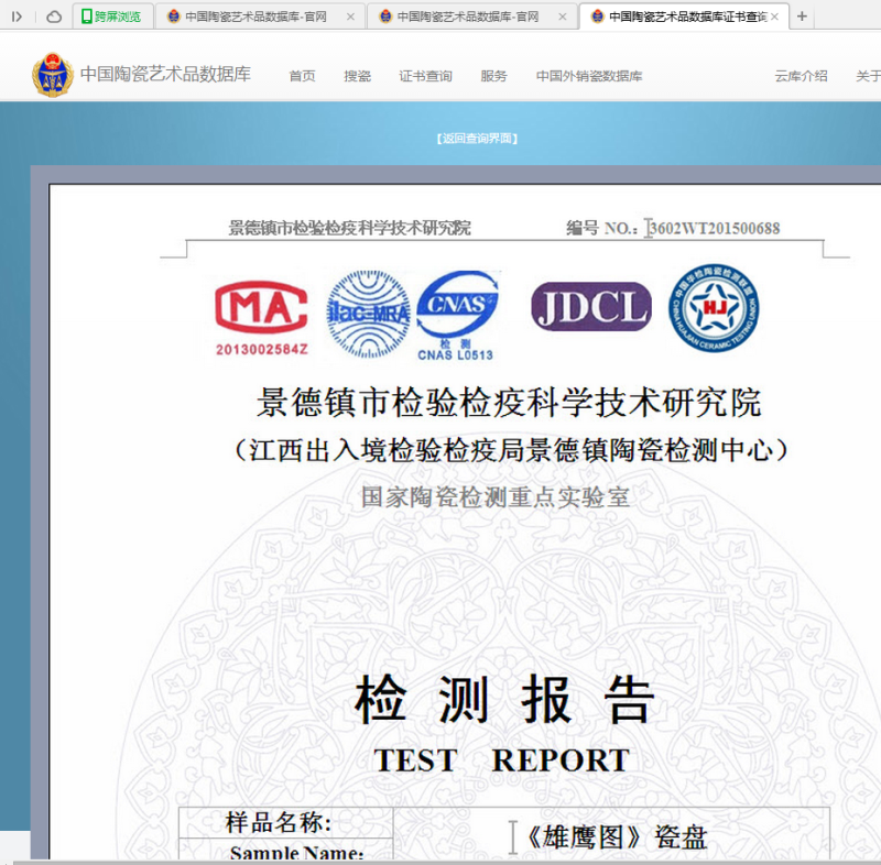 3、點(diǎn)擊圖示“證書(shū)查詢”,按照證書(shū)上的證書(shū)編號(hào)及密碼輸入信息,即可查詢到該證書(shū)對(duì)應(yīng)產(chǎn)品的檢測(cè)報(bào)告內(nèi)容(該檢測(cè)報(bào)告顯示了對(duì)應(yīng)產(chǎn)品基本信息及兩個(gè)體視顯微鏡照片信息)