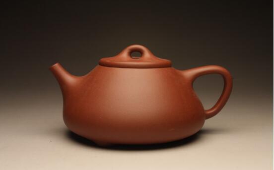 “石瓢”最早稱為“石銚”,“銚”在《辭海》中釋為“吊子,一種有柄,有流的小烹器”。“銚”從金屬器皿變?yōu)樘掌鳎钤缫?jiàn)于北宋大學(xué)士蘇軾《試院煎茶》詩(shī):“且學(xué)公家作名欽,磚爐石銚行相隨”。蘇東坡把金屬“銚”改為石“銚”,這與當(dāng)時(shí)的茶道有著密切的關(guān)系。蘇東坡貶官到宜興蜀山教書,發(fā)現(xiàn)當(dāng)?shù)氐淖仙肮拗蟛璞茹~、鐵器皿味道好,于是他就地取材,模仿金屬吊子設(shè)計(jì)了一把既有“流”(壺嘴),又有”梁”(壺提)的砂陶之“銚”用來(lái)煮茶,這“銚”也即后人所稱的“東坡提梁”壺,這可謂最早的紫砂“石銚”壺。