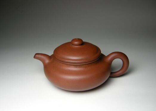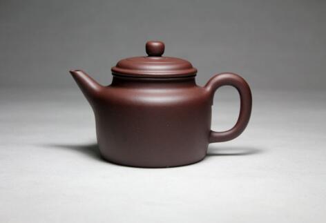 一說(shuō)清代邵大亨初創(chuàng),原意是壺體仿照鼓型,后人仿制做這種壺形就成了仿古代壺型的意思了。另說(shuō)最早見(jiàn)于近代趙松亭按吳大徴授意所作,身扁、腹鼓、頸高、蓋板平滑,壺蓋與口沿子母線吻合嚴(yán)密,合成圓線飽滿,扁鈕有力,虹鈕有勢(shì),二彎流胥出自然 ;圓圈把勻勢(shì)而起,有些款把圓下有垂,富于靈動(dòng),整體骨肉亭勻,收展有度,有一氣呵成之暢。